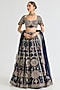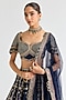 Featuring a navy lehenga in raw silk base with embroidery. It is paired with a raw silk embroidered blouse and a net embroidered dupatta. Accentuate the designer lehenga with gold or kundan polki jewellery, embellished heels and a potli bag for a bridal look, Perfect for your wedding, sangeet or engagement ceremony