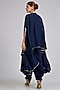 Featuring a navy cape in silk base with embroidery. It is paired with a draped salwar. Accentuate it with pearl jewellery, strappy sandals and a loose bun for a cocktail look, Perfect for evening receptions, cocktail events or gala dinners.