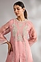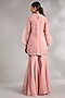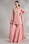 Featuring an onion pink kurta in organza base. It is paired with gharara pants and a dupatta. Accentuate it with minimal jewellery and heels for weddings or festive ceremonies.