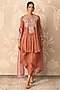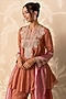 Featuring an orange flared kurta in chanderi tissue base with embroidery. It is paired with draped salwar pants and a tissue embroidered dupatta. Style it with statement earrings, bold heels and a metallic clutch for a striking edge, Perfect for a festive occasion, sangeet or evening celebrations.
