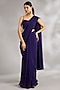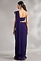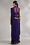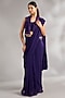 Featuring a purple ruffled saree in georgette base. It is paired with a bustier, crepe underskirt and an organza embroidered jacket. Accentuate it with statement jewellery and heels for sangeet ceremonies.