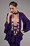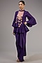 Featuring a purple top in habutai silk base with placement embroidery. It is paired with a draped skirt. Accentuate it with statement earrings and heels for a sangeet, engagement or cocktail ceremonies.
