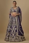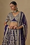 Featuring a purple lehenga in raw silk base with embroidery. It is paired with an embroidered blouse and a net embroidered dupatta. Accentuate the designer lehenga with swarovski or pearl, embellished heels and a potli bag for a traditional look, perfect for wedding, sangeet or engagement ceremonies.