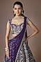 Featuring a purple lehenga in raw silk base with embroidery. It is paired with a raw silk blouse and net dupatta. Style this lehenga set with kundan polki jewellery, a polti bag and block heels for weddings celebrations or festive occasions.