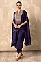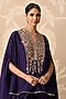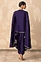 Featuring a purple cape in silk base with embroidery. It is paired with draped salwar pants. Style it with statement earrings, bold heels and a metallic clutch for a striking edge, Perfect for a festive occasion, sangeet or evening celebrations.