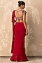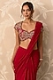 Featuring a red draped saree in chiffon and organza base. It is paired with a net embroidered blouse having a back tie-up detail. Style it with statement jewellery, bold heels and a metallic clutch for a striking edge, Perfect for a wedding, sangeet or engagement ceremonies.