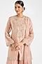 Featuring a rose gold kurta in tissue base with embroidery. It is paired with sharara pants and an embroidered dupatta. Accentuate it with statement jewellery, embellished heels and a clutch for festive occasions or wedding ceremony.