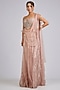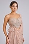 Featuring a rose gold stitched skirt saree in tissue base. It is paired with an embroidered net blouse having an attached drape. Accentuate it with chandelier earrings and metallic heels for a glamorous touch, perfect for weddings, receptions and festive evening events.