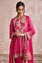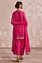 Featuring a royal fuchsia kurta in organza base with embroidery. It is paired with silk salwar pants and an embroidered dupatta. Accentuate it with statement earrings, a sleek clutch, and embellished juttis for a graceful look, perfect for festive gatherings or intimate celebrations.