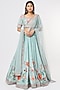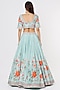 Featuring a sea green lehenga in silk base with print and embroidery. It is paired with a matching blouse and an organza dupatta.
