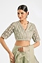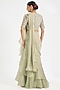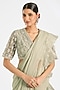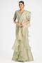 Featuring a silver green pre-draped ruffled saree in chiffon and organza base. It is paired with a net blouse having a v-neckline and crystal embroidery. Accentuate with statement jewellery and heels for festive occasions or wedding ceremony.