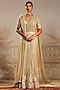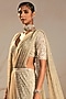 Ridhi Mehra features a mesmerizing Silver Green Pre-Draped Skirt Saree Set that captivates with its elegance. The eye-catching skirt saree is crafted in net with motifs embroidery. It is paired with a draped blouse and a detachable dupatta. Style it with traditional jewellery and heels for a wedding or engagement ceremony, showcasing style and sophistication.
