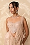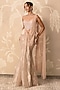 Featuring a water gold skirt saree in tissue base with an attached net drape. It is paired with a net and tissue embroidered blouse. Style it with statement earrings, bold heels and a metallic clutch for a striking edge, Perfect for a wedding, mehendi, engagement parties, or glamorous evening celebrations.