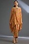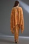 Featuring a yellow cape in fine silk base with print. It is paired with a printed cotton silk draped skirt. Accentuate it with statement jewellery and heels for a festive look.