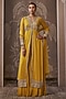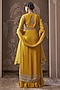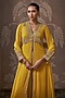 Featuring a yellow kurta in georgette base with embroidery. It is paired with sharara pants and a net dupatta. Accentuate it with traditional jhumkas, a coordinated potli bag and embellished heels for a stylish ensemble, ideal for festive gatherings, pre-wedding functions or graceful family celebrations.