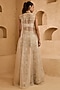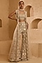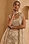 Featuring an ivory jacket in net and organza base with embroidery. It is paired with an embroidered bustier and embroidered pants. Accentuate it with zircon jewellery and heels for festive celebrations or sangeet ceremony.