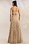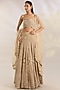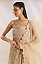 Featuring a beige lehenga in net and organza base with embroidery. It is paired with an embroidered blouse and a dupatta. Accentuate the designer lehenga with kundan polki or zircon jewellery, embellished heels and a potli bag for a bridal look, Perfect wear for your wedding or engagement ceremony.