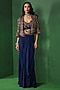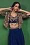 Featuring a blue cape in georgette and crepe base with print and hand embroidery. It is paired with an embroidered blouse and a draped skirt. Accentuate it with zircon jewellery and block heels for festive celebrations, cocktail or sangeet ceremony.
