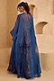 Featuring a blue peplum in chanderi and organza base with print and embroidery, including scallop detail. It is paired with printed sharara pants and a kaftan-style cape. Accentuate it with kundan polki jewellery and block heels for festive celebrations or sangeet ceremony.
