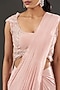 Featuring a blush pink pre-draped saree in chiffon and tulle base. It is paired with a matching aari embroidered blouse. Accentuate it with statement jewellery and heels for a festive wear or evening party.