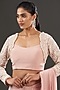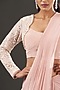 Featuring a blush pink pre-draped saree in satin base. It is paired with a matching embroidered blouse. Accentuate it with statement jewellery and heels for a festive wear or evening party.