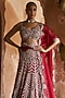 Featuring a crimson red lehenga in net base with embroidery. It is paired with a blouse having thread work and bead embellishment, including a pure organza embroidered dupatta. Accentuate it with statement jewellery, a clutch and heels, radiating traditional charm for weddings, sangeet ceremonies or a bridal look.
