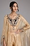 Featuring a gold kurta in foil tissue base with embellishment. It is paired with flared palazzo pants. Accentuate it with statement earrings and heels for a festive look.