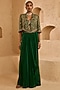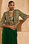 Featuring a green jacket in georgette and crepe base with print and hand embroidery. It is paired with an embroidered blouse and a draped skirt. Accentuate it with kundan polki jewellery and block heels for festive celebrations or mehendi ceremony.