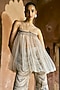 Featuring a grey sheer top in net base. It is paired with embroidered pants and a bustier. Accentuate it with statement jewellery and heels, blending contemporary and traditional charm for festive occasions or diwali parties.