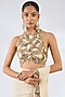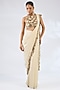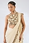 Featuring an ivory saree in chiffon and crepe base. It is paired with an embellished blouse having a halter neckline. Accentuate it with statement earrings, block heels and a clutch for a cocktail party, wedding reception, engagement ceremony or festive evening event.