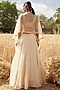 Featuring an ivory high-waisted lehenga in organza base with hand embroidery. It is paired with a matching bustier and a dupatta.