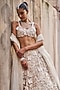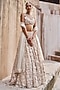 Featuring an ivory lehenga in net and organza base with pearls and 3D embroidery. It is paired with a blouse and an embroidered dupatta. Accentuate it with statement jewellery, a clutch and heels, radiating timeless elegance for weddings or sangeet ceremonies.