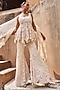 Featuring an ivory peplum kurta in net and organza base with hand embroidery. It is paired with pants and a dupatta. Accentuate it with statement jewellery and heels, blending contemporary and traditional charm for festive occasions or diwali parties.