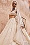 Featuring an ivory lehenga in organza base with scallop embroidery. It is paired with an embroidered blouse and an embroidered dupatta. Accentuate it with emerald and swarovski jewellery, embellished heels and a potli bag for a bridal look, Perfect wear for your reception, sangeet or wedding ceremony.