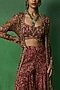 Featuring a pink jacket in organza base with hand embroidery. It is paired with a hand embroidered bustier and chiffon printed sharara pants. Accentuate it with zircon jewellery, strappy heels and a clutch for festive celebrations or sangeet ceremony.