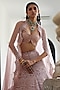 Featuring a gracious pink lehenga in organza base, an ideal and aesthetically designed choice for the contemporary Indian bride. This chic lehenga set has the ageless craftsmanship of crystals, machine and hand work. It includes an embellished blouse and a dupatta to complete the royal bride's look.