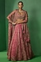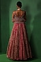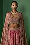Featuring a pink lehenga in organza base with print and embellished waist. It is paired with an embroidered blouse and a scalloped embroidered dupatta. Accentuate it with kundan polki jewellery and embellished heels for a bridesmaid look, Perfect wear for a sangeet or wedding ceremony.