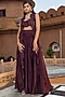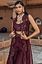 Featuring a plum jacket in organza base. It is paired with a matching embellished blouse and palazzo pants having belt.