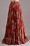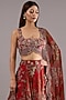 Featuring a red lehenga in organza and crepe base with floral print. It is paired with an embroidered blouse and a sheer dupatta. Accentuate with statement earrings and heels for a sangeet, wedding or engagement ceremonies.