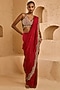 Featuring a red saree in flat chiffon and organza base with pearl embroidery. It is paired with an embroidered blouse. Accentuate it with zircon jewellery and block heels for festive celebrations or sangeet ceremony.