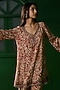Featuring a red A-line kurta in rayon base with scallop embroidery. It is paired with pants. Accentuate it with dangler earrings and block heels for festive celebrations or pooja ceremony.