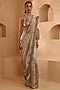 Featuring a silver saree in pure tissue base with scalloped hand embroidery. It is paired with a hand embroidered blouse. Accentuate it with emerald jewellery and block heels for festive celebrations or wedding ceremony.