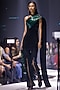 Featuring an emerald green and black draped tuxedo in metal wire base. It is paired with matching pants having slit.
