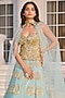 Featuring an aqua blue lehenga in net, dupion raw silk and shantoon base with hand embellishment. It is paired with an embellished corset and a dupatta. Accentuate it with statement jewellery and heels for an engagement or wedding ceremony.