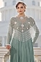 Featuring an aqua blue anarkali in georgette and net base with hand embellishment. It is paired with a cape. Perfect for wedding celebrations, festive soirees, or receptions, this ensemble redefines heritage elegance in a contemporary silhouette.