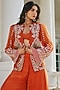 Autumn Orange Organza & Crepe Hand Embellished Jacket Set