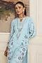 Featuring a blue kurta in chanderi base with sequins, zari, thread work. It is paired with pants and a dupatta. Style it with dangler earrings and heels for a festive occasion, engagement, sangeet or wedding ceremony.