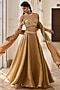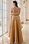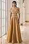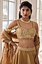 Featuring a gold lehenga in glass organza and shantoon base with hand embroidery. It is paired with an embroidered blouse and a draped dupatta. Accentuate it with statement jewellery and heels for a sangeet or engagement ceremony.