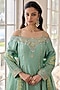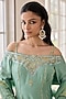 Featuring a mint green off-shoulder anarkali in dupion silk, cotton and shantoon base with hand embroidery. It is paired with a dupatta. Accentuate it with statement earrings and elegant heels for a refined look, perfect for festive gatherings, sangeet ceremonies, family celebrations, or cultural occasions.