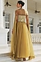 Featuring an olive anarkali in crepe, net and shantoon base with dori work and hand embroidery. It is paired with a cape. Accentuate it with oxidised jhumkas and block heels for a stylish ensemble, ideal for haldi functions or festive occasions.